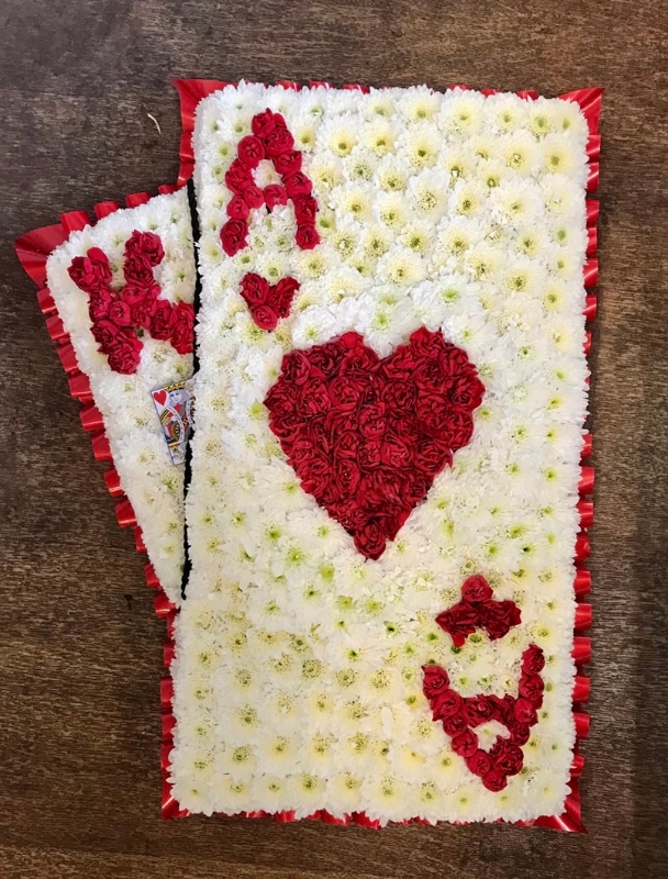 Playing cards floral tribute. Any suit available